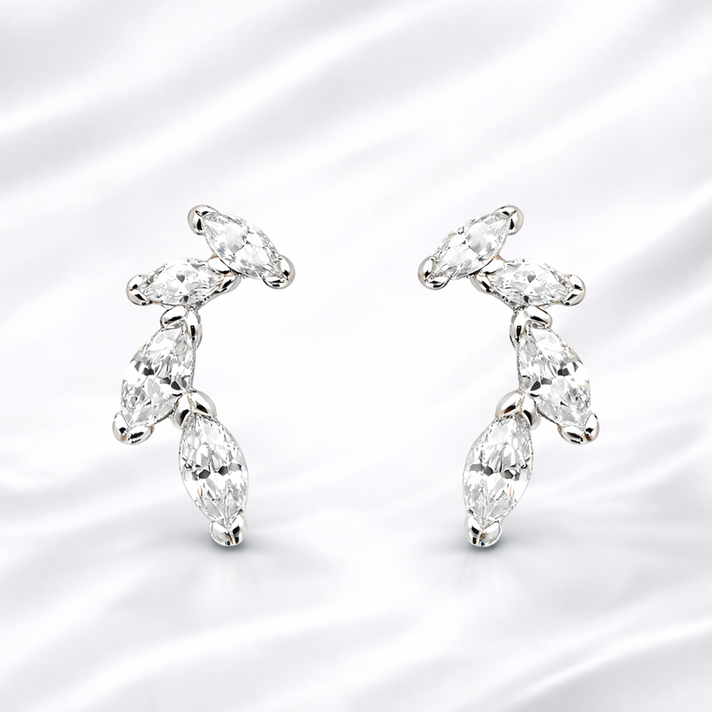 Add effortless elegance to your everyday look with these beautifully crafted silver stud earrings. Designed with four sparkling marquise-cut cubic zirconias arranged in a soft, curved silhouette, they catch the light from every angle for a refined yet eye-catching finish.