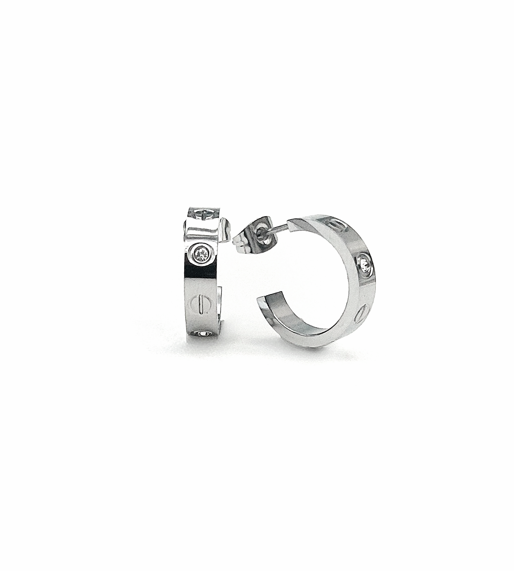 Introducing our on trend waterproof high shine Hoop Earrings. These stunning hoops are designed with a secure stud fixing, ensuring they stay in place while you enjoy your day or night. Crafted with a screw design, these earrings are set with semi-precious stone zircons that catch the light beautifully, offering a touch of luxury. The high-shine finish is not only eye catching but also waterproof, making these earrings an ideal choice for any occasion, from beach outings to glamorous evenings. Elevate your accessory game with these timeless earrings that will stand the test of time.