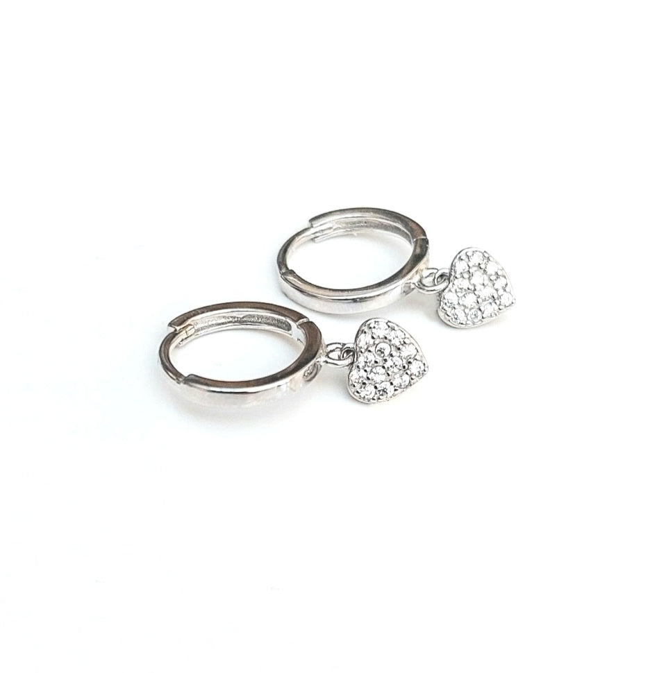 These heart huggie earrings offer a chic and contemporary look with a modern twist. Made from sterling silver, these huggie earrings come with a heart charm set with beautiful cubic zirconias for a touch of sparkle and shine. Perfect for any occasion.